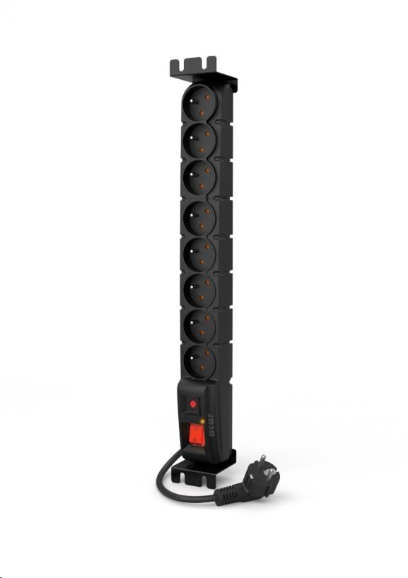 19" rozvodný panel ACAR 8x230V, vypínač, indikátor napětí, přepěťová ochrana, kabel 1,5m