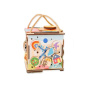 Activity board kostka se zábavnými a montessori prvky nadchne holčičky i kluky. Snadno přenosná kostka si pro děti připravila logické i zábavné hry, které děti zabaví a zdokonalí jejich dovednosti. Každá strana activity board kostky je originální a přináší jiná dobrodružství. Na vrchní straně kostky najdete velký sluníčkový vypínač, s jehož pomocí kostku rozsvítíte. Activity kostka na cesty je montessori hračkou i nočním světýlkem (promítačkou)..