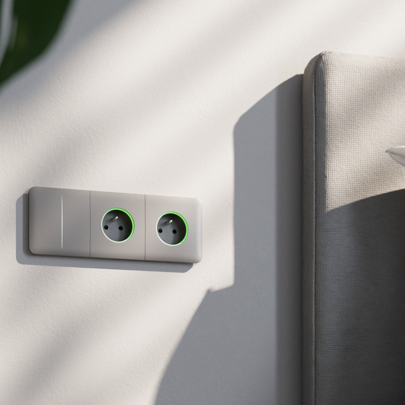 Zásuvky lze používat samostatně nebo je kombinovat s chytrými vypínači LightSwitch a instalovat do rámečku. Přístroje mají stejný design rámečku a barevné odstíny.