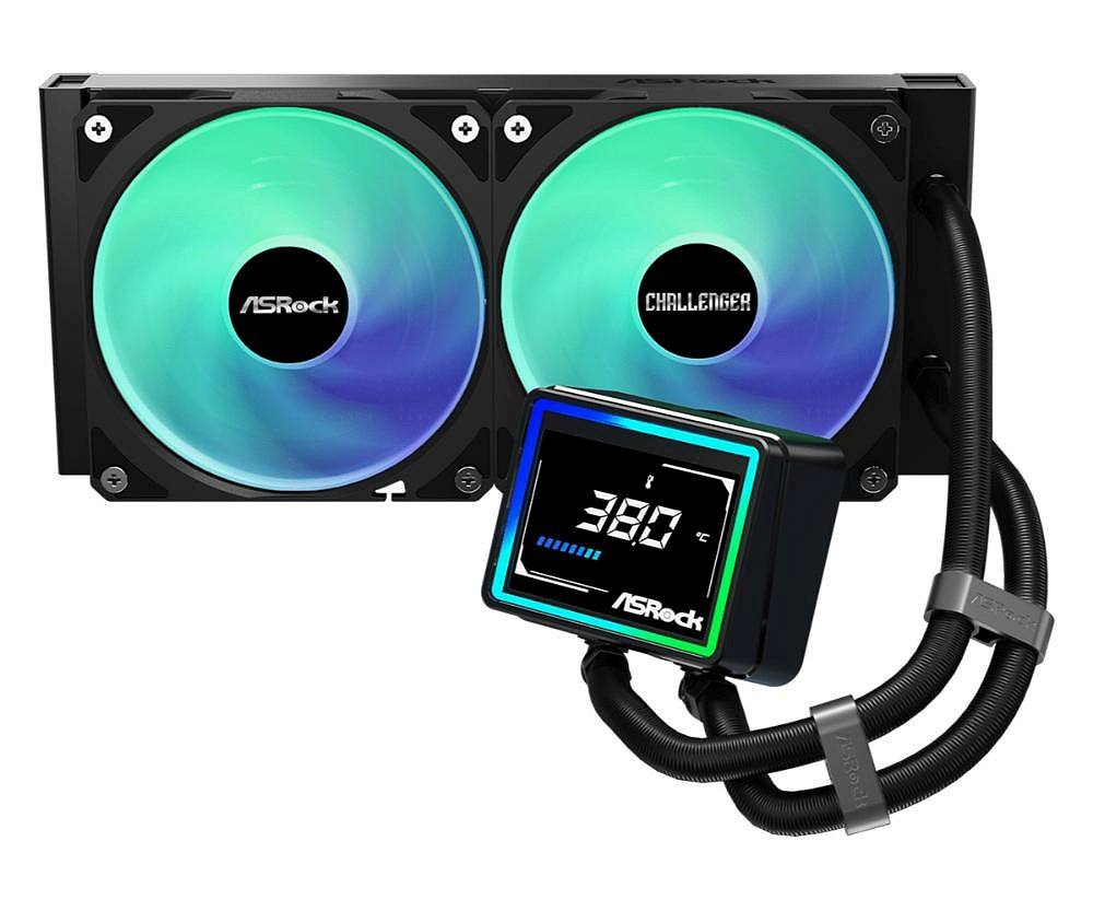ASROCK Vodní chladič Challenger 240 Digital, 2x120mm, ARGB, LGA1851, AM5, černá
