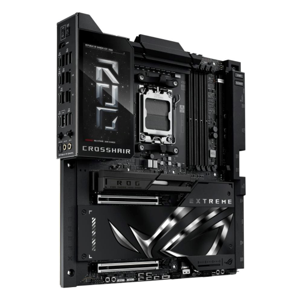 The ROG Crosshair X870E Extreme is the flagship AMD Ryzen 9000 series motherboard, designed for the most discerning users. It provides the ultimate foundation for AM5 CPUs, DDR5 memory, and PCIe 5.0 components to ensure maximum performance and future-readiness. Its comprehensive connectivity includes USB4, and the integrated 5-inch LCD offers a unique way to monitor system performance or add a touch of personalized style.