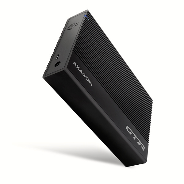 Žebrovaný hliníkový externí AXAGON EE35-GTR RIBBED box s USB-C 5Gbps rozhraním určený pro 3.5" SATA pevné disky. Spolehlivé připojení k počítači umožňuje oboustranný USB-C konektor na boxu spolu s dodávaným kabelem USB-C -> USB-A a redukcí USB-A -> USB-C.