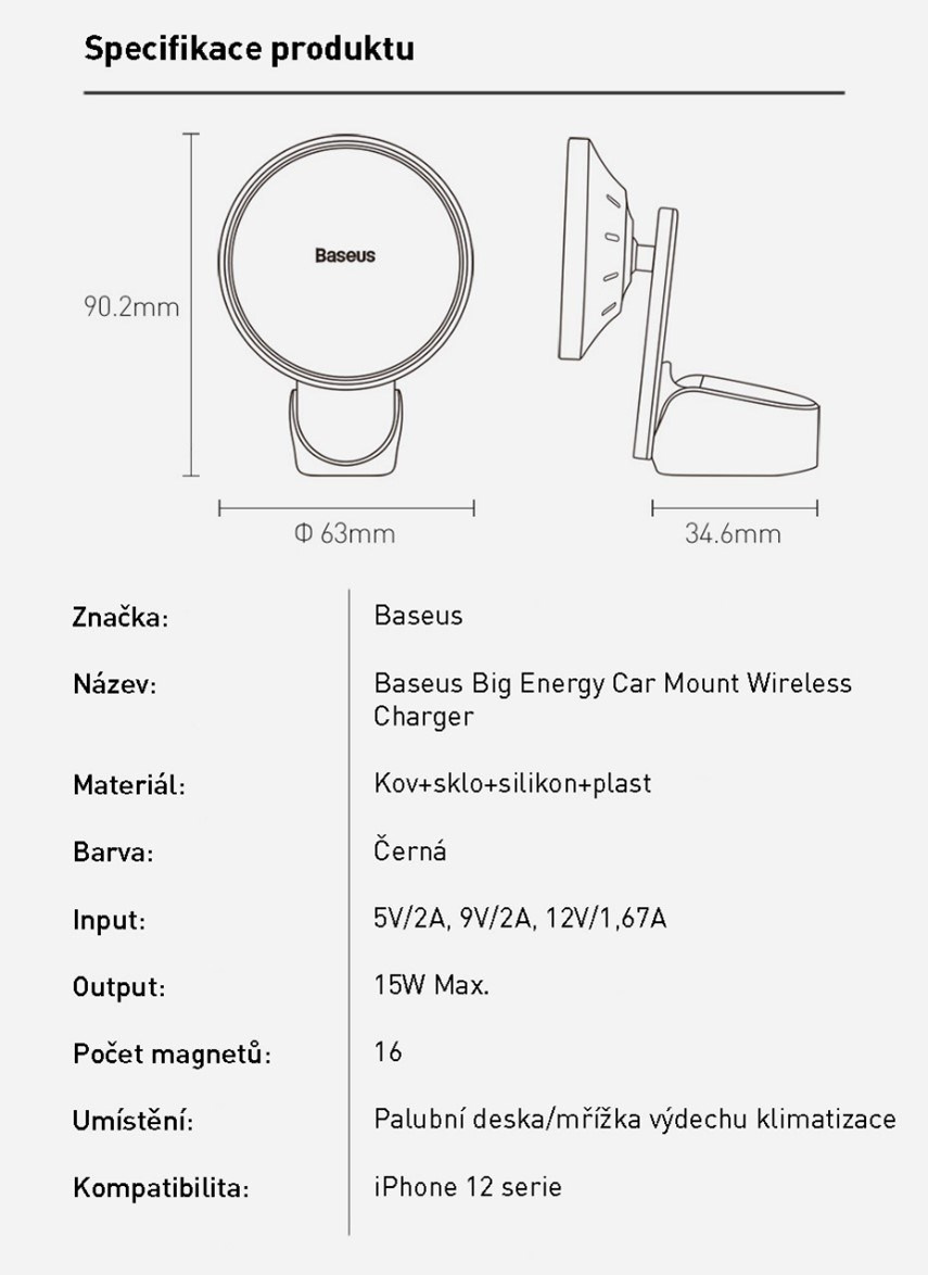 - Kompatibilita s?řadou iPhone 12 (MagSafe nabíjení)