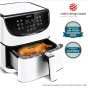 Vyjímatelný fritovací koš a nádoba jsou vyrobeny z odolného, nepřilnavého a zdravotně nezávadného materiálu (BPA a BFOA FREE) a lze je mýt v myčce. Vždy chladná rukojeť a tlačítko pro uvolnění koše eliminují riziko popálení a nechtěného uvolnění.
