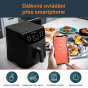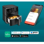Díky SMART ovládaní můžete jídla připravovat pomocí svého smartphonu. Jednoduše si stáhněte bezplatnou aplikaci z Google Play nebo App Store. V aplikaci můžete navolit jednotlivé programy nebo procházet recepty, sledovat progres přípravy jídla nebo nastavit upozornění. Fritéza je také kompatibilní s Amazon Alexa a Google Asistant.