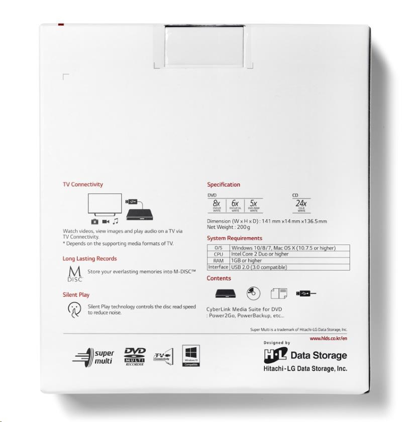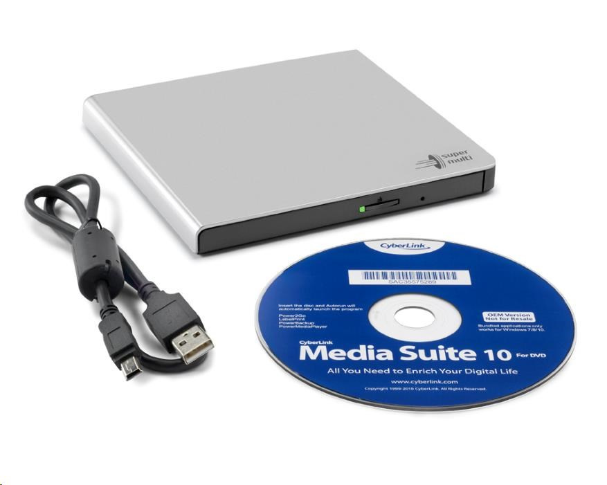 BAZAR - HITACHI LG - externí mechanika DVD-W/CD-RW/DVD±R/±RW/RAM GP57ES40, Slim, Silver, box+SW - Poškozený obal (Komple