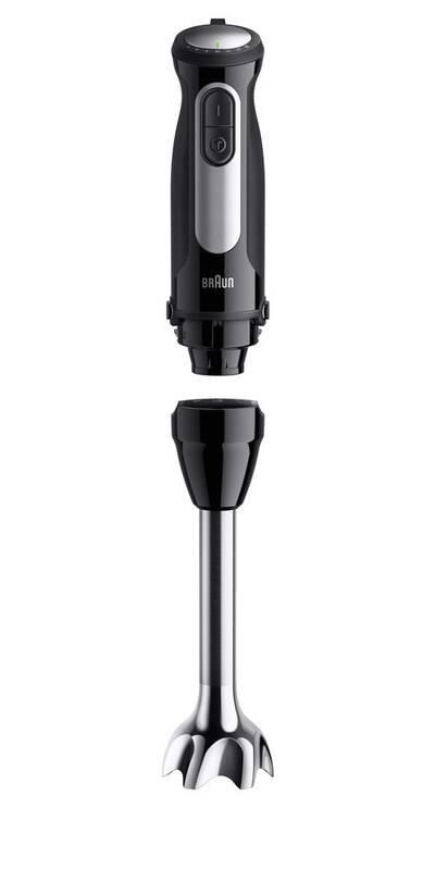 Ponorný mixér Braun MQ55.307M MultiQuick 5 Pro se stane vaším nepostradatelným pomocníkem v kuchyni. Potěší svým špičkovým výkonem, který dosahuje 1 000 W. Vybrat si můžete z 25 rychlostí a režimu Turbo, který z přístroje během okamžiku vytěží maximum. Manipulaci s přístrojem usnadňuje přítomnost ergonomické rukojeti. Samozřejmostí je velmi jednoduché ovládání, které si snadno osvojíte. Výměnu jednotlivých nástavců a příslušenství zjednodušuje systém EasyClick Plus.