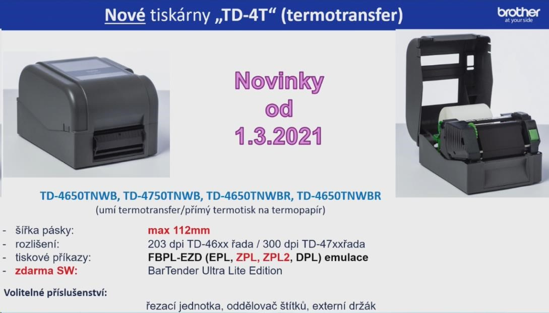 BROTHER tiskárna štítků TD-4750TNWBR (tisk štítků, 300 dpi, max šířka štítků 112 mm) USB,LAN,WiFi,Bluetooth,RS-232C+RFID