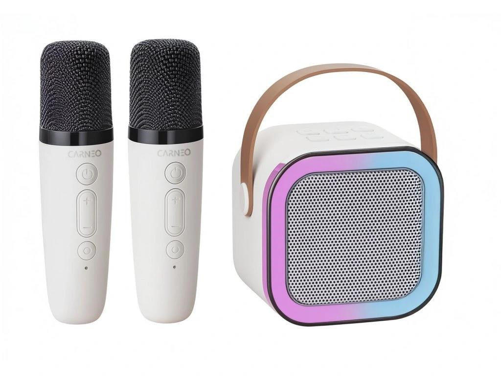 CARNEO Karaoke DJ mini je ideální společník pro každé dětské vystoupení, oslavu či zábavu s kamarády. Tento přenosný karaoke systém je navržen speciálně pro děti – s jednoduchým ovládáním, barevným LED podsvícením a dvěma bezdrátovými mikrofony, díky kterým mohou zpívat společně se sourozenci či kamarády. Díky kompaktnímu designu a praktickému držadlu je set vhodný i na cesty, výlety či dětské párty.