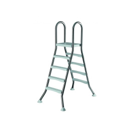 Bazénový žebřík pro bazény se stěnou až 122 cm, vyrobený z kvalitní nerezové oceli, která zajistí jeho dlouhou životnost. Žebřík má silné stabilní plastové schodnice a plošinu s protiskluzovou úpravou, udrží hmotnost až 150 kg. Žebřík má 4 stupně na vnitřní a vnější straně. Nohy žebříku jsou zakončeny koncovkami z protiskluzové gumy se stabilní podložkou, které zabraňují nechtěnému pohybu žebříku a zvyšují tak bezpečnost. Zároveň zabraňují poškození vašeho bazénu.