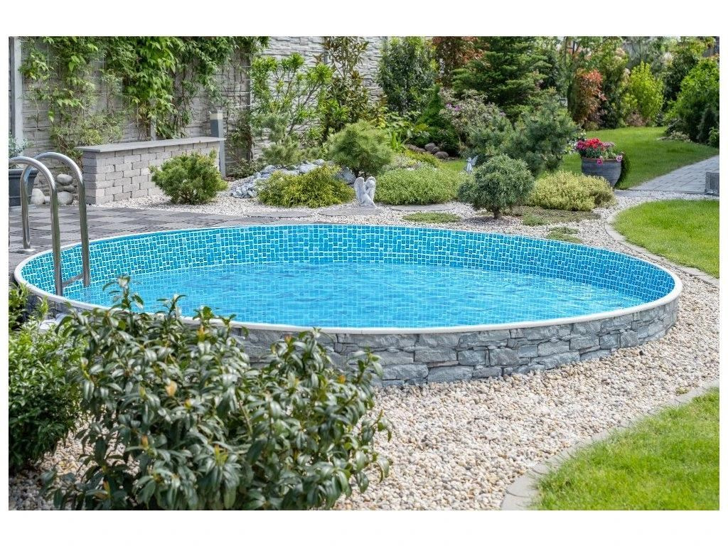 Bazénová fólie Mosaic pro bazény s plechovou stěnou o rozměru 5,5 m x 3,7 m a hloubce až 1,2 m (fólie je vhodná pro bazény Azuro V6 nebo 404). Fólie je vhodná jak pro nové bazény, tak i na výměnu do již postavených bazénů. Jedná se o kvalitní fólii odolnou vůči oděru a bazénové chemii.