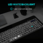 Klávesnice kromě klasických funkcí disponuje 12 multimediálními klávesami, které se obzvláště hodí do kancelářského prostředí. Její bílé podsvícení vám umožní pracovat i v pozdních hodinách při nízkém osvětlení. Příjemný ergonomický náklon klávesnice pomáhá proti únavě zápěstí během dlouhých pracovních relacích.