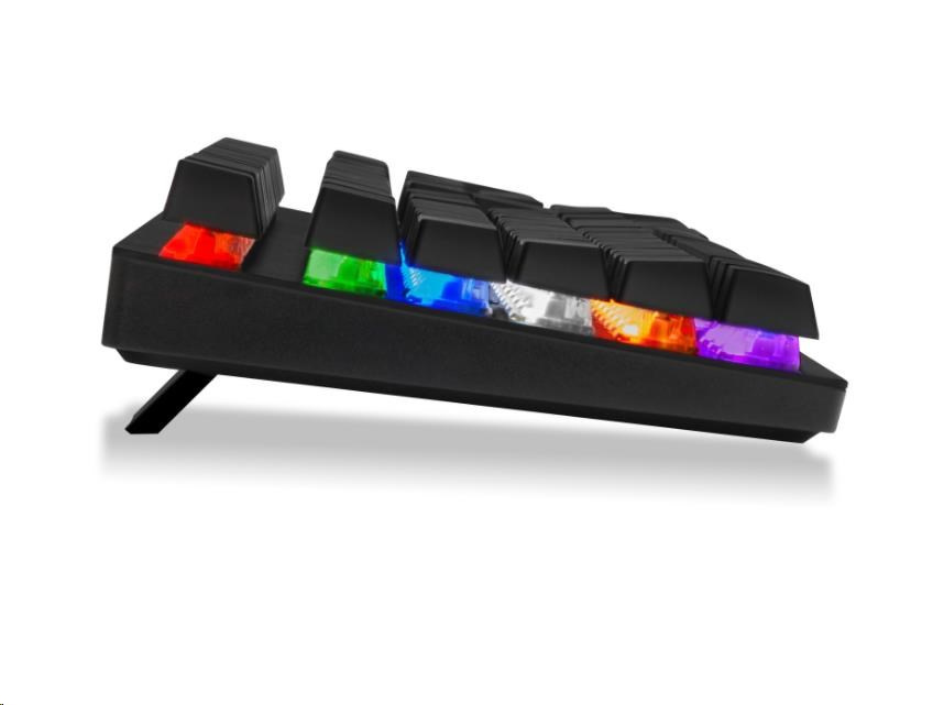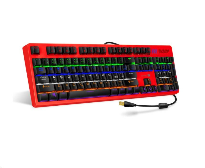 Profesionální mechanická klávesnice NEO+ series pro hráče počítačových her v českém a slovenském layoutu s celkem 22 módy barevného rainbow podsvícení a pětistupňovou regulací intenzity podsvícení. K dispozici je 12 multimediálních kláves.