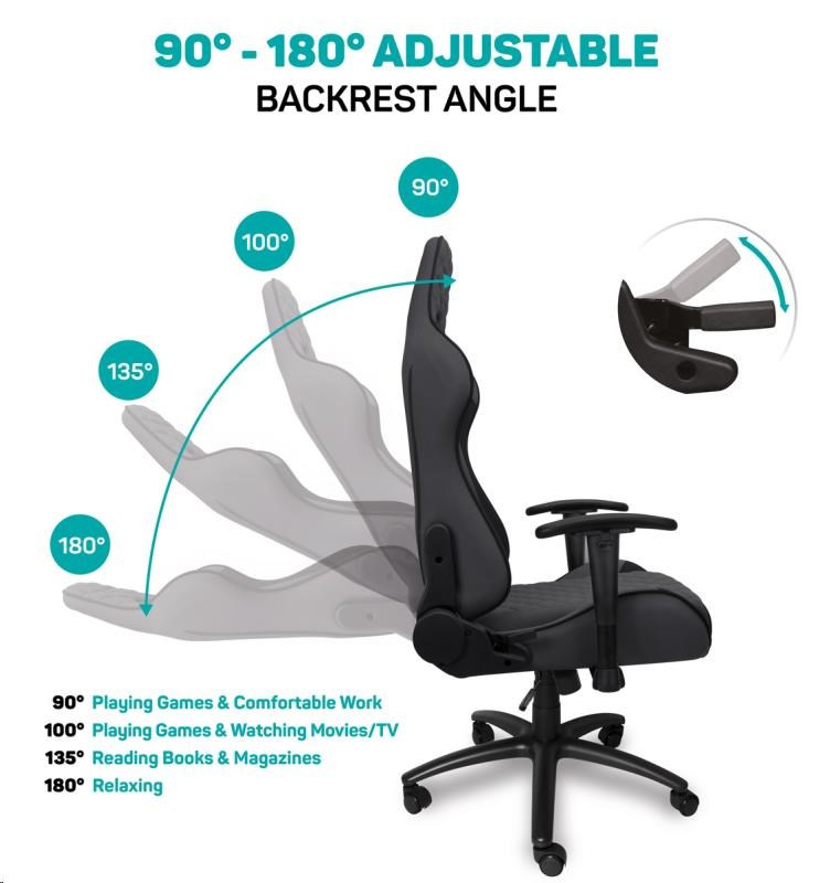 Vyniká luxusním zpracováním, moderním ergonomickým designem a velmi stabilní konstrukcí. Mnohačetná nastavení vyhoví každé postavě. Design byl speciálně navržen pro dlouhodobé sezení a umožňuje i běžnou práci doma i v kanceláři. Ideální pro mnohahodinové hraní bez kompromisů.