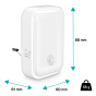 Světlo disponuje posuvníkem, který umožňuje zapnout/vypnout světlo a nastavit režim automatického zapnutí při zaznamenání pohybu v šeru. Světlo stačí jednoduše zapojit do libovolné zásuvky a při příkonu 0,80 W se nemusíte bát spotřeby elektrické energie. LED zdroj světla disponuje světelným tokem 30 lumenů.