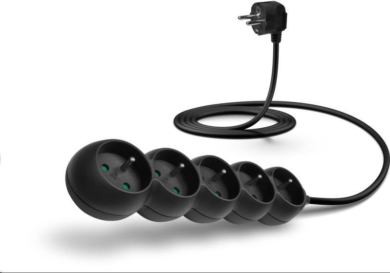 CONNECT IT prodlužovací kabel 230 V, 5 zásuvek, 2 m, bez vypínače (černý)