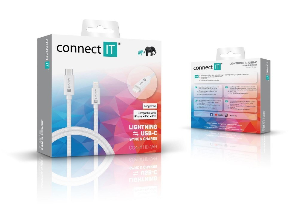 CONNECT IT Wirez USB-C -> Lightning, 27 W, 1m, bílá