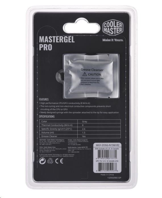 Cooler Master termální pasta na CPU Master Gel Pro V2, tep. vodivost 8 W.m, 1.5ml, 4g, šedá