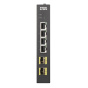 D-Link DIS-100G-6S je průmyslový 6-portový Gigabit Ethernet switch bez managementu, osazený 4 porty 10/100/1000M RJ-45 a dvěma Gigabit SFP sloty pro optický uplink. Přepínač je určen pro montáž na DIN lištu. Je v robustním kovovém provedení bez ventilátoru, se stupněm krytí IP40 a s rozšířeným rozsahem provozních teplot -20°C až +65°C. Pro napájení s možností redundance jsou k dispozici dvě svorkovnice 12V-48V DC, volitelně lze dokoupit 230V AC zdroj (např. D-Link DIS-H30-24). Switch je vhodný pro instalaci do klimaticky náročných prostředí, jako jsou průmyslové aplikace, automatizace, dopravní aplikace, kamerové systémy, internet věcí (Internet of Things, IoT), chytrá města (Smart Cities) apod. Specifikace: - Porty 4x 10/100/1000Base-T RJ-45 - 2x Gigabit SFP slot - Flow Control IEEE 802.3x (Full Duplex), Back-Pressure(Half Duplex) - MDI/MDI-X Auto-Crossover - Stupeň krytí IP40, kovový kryt - Instalace na DIN lištu - Bez ventilátorů - Provozní teploty -20°C až +65°C, relativní vlhkost 5-95% (nekondenzující) - Dvě svorkovnice pro redundantní napájení 12-48V DC (volitelný 230V AC zdroj např. DIS-H30-24) - Spotřeba: maximum 4,82 W, standby 2,45 W - Releový výstup pro alarm (max. 24V/1A) - MAC tabulka 4K záznamů - Jumbo rámce 9KB - QoS IEEE 802.1p, 8 prioritních front per port - IEEE 802.3az Energy-Efficient Ethernet (EEE) - Rozměry: 162 x 102 x 28 mm - Hmotnost: 0,446 kg - Certifikace odolnosti: rázy IEC 60068-2-27, volný pád IEC 60068-2-32, vibrace IEC 60068-2-6.