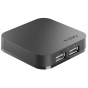 4portový Hi-speed USB 2.0 Hub - 4portový USB Hub pro připojení USB 2.0 periférií a zařízení - USB 2.0 - 4 USB A porty pro připojení USB zařízení z toho 1 port může být použit pro nabíjení připojeného zařízení, 2 A - 1 USB B port pro připojení k PC nebo jinému USB hubu - High-Speed 480Mbps přenosová rychlost - zpětně kompatibilní s USB 1.1 zařízeními - LED kontrolky pro napájení a jednotlivé porty - 1,8 m 'A' do 'B' kabel - malé stolní zařízení, černé.