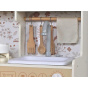 Dětská kuchyňka ve světlých barevných tónech, zdobená květy, je stylovou edukativní hračkou pro děti od 3 let věku. V dřevěné kuchyňce s moderními spotřebiči a tekoucí vodou popustí děti uzdu své fantazii, mohou vařit, péct a ohřívat pokrmy, uvařit kávu a klidně vyprat špinavé prádlo. Jednoduše si vyzkouší dospělácké činnosti bezpečným dětským způsobem. Reálný nádech celé hře dodají zvukové efekty, které vydává sporák nebo vodovodní baterie..