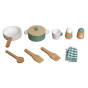 Dětská kuchyňka v krásných barvách, s květinovým vzorem, je stylovou edukativní hračkou pro děti od 3 let věku. V dřevěné kuchyňce s moderními spotřebiči děti popustí uzdu své fantazii, mohou připravovat pokrmy, uvařit kávu a klidně vyprat špinavé prádlo. Jednoduše si vyzkouší dospělácké činnosti bezpečným dětským způsobem. Reálný nádech celé hře dodá sporák se světelnými a zvukovými efekty..