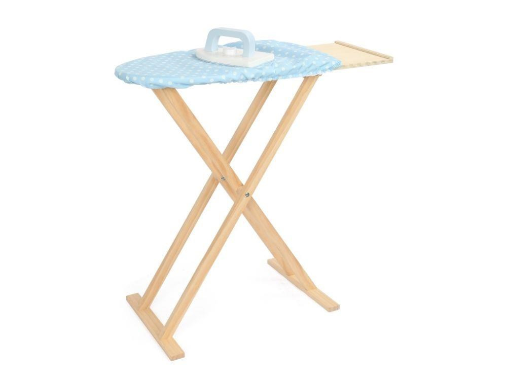 Dřevěné dětské žehlící prkno s dřevěnou žehličkou a látkovým potahem na prkno je originální edukativní hračkou, která umožní dětem vyzkoušet si jednu z dospěláckých činnosti bezpečným dětským způsobem. O dřevěnou žehličku se děti určitě nespálí, vyzkouší si žehlení i poskládat vyžehlené prádlo. Hračka zdokonaluje dětské dovednosti a umožňuje dětem hrát role..
