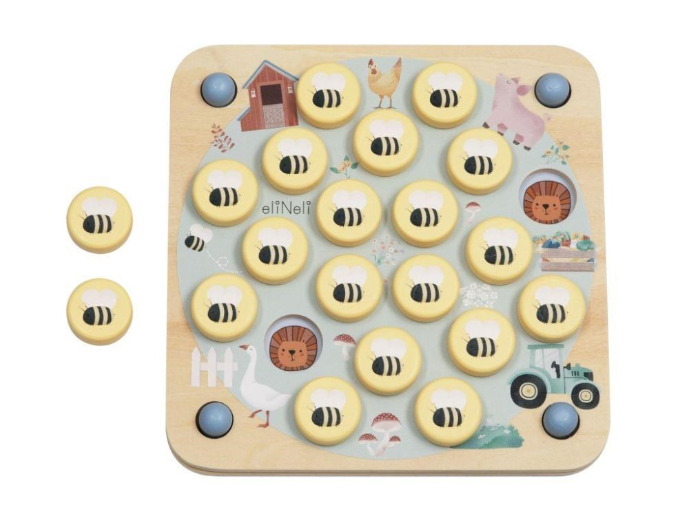 Dřevěné pexeso s včelkami si pro děti připravilo 10 různých předloh, různé obtížnosti. Jednoduchou výměnou podkladu se přizpůsobí věku a znalostem každého dítka. Ti nejmenší si zahrají pexeso se zvířátky, ovocem nebo základními tvary, chlapci s dopravními prostředky a ti největší šikulové s číslicemi. Dětské pexeso 10v1 je zábavnou společenskou hrou i vzdělávací pomůckou v jednom..