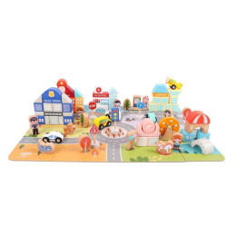 Parádní sada kostek Metropole umožní dětem vybudovat město se vším všudy přímo v jejich dětské pokoji. Sada 104 ks dřevěných kostek různých tvarů, s autíčky, postavičkami a dopravními značkami zajistí dětem zábavu a ještě je něco nového přiučí. Na puzzle podložce se silnicí, jezírkem a zelení děti postaví nemocnici, letiště, policejní a hasičskou stanici a další budovy - město, které může mít spoustu podob..