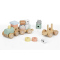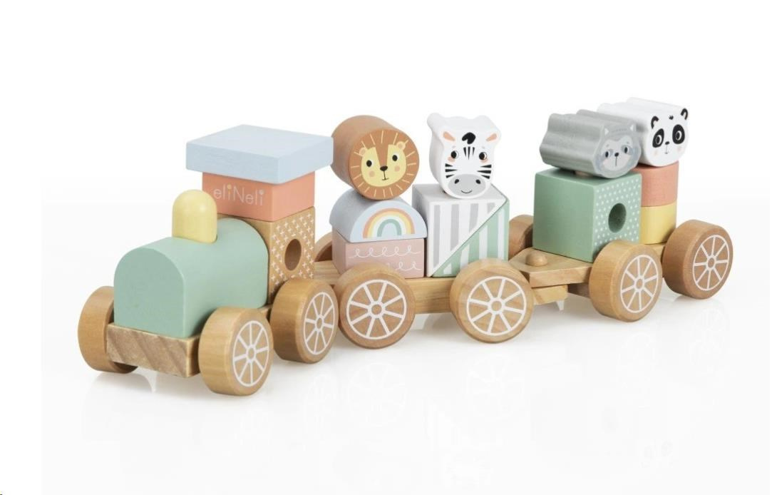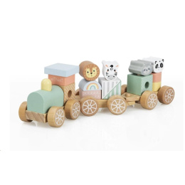 Dřevěný vláček pro děti, s kostkami a zvířátky ze ZOO, je krásnou multifunkční hračkou i dekorací do dětského pokoje. Jemné pastelové barvy propůjčují vláčku lákavý vzhled a díky neutrálním barvám je vhodným dárkem pro holčičky i kluky. Dřevěné kostky a oblíbená zvířátka mohou děti povozit po svém pokojíčku i po celém domě či bytě. Děti si mohou hrát se samotným vláčkem, s jeho jednotlivými vagónky, nakládat a vykládat kostičky a zvířátka, vytvářet různé kombinace nebo si hrát se samotnými kostkami. Při hře s vláček a jeho částmi děti zdokonalují motorické dovednosti, koordinaci očí a rukou, logické myšlení, rozvíjí logické myšlení a kreativitu.
