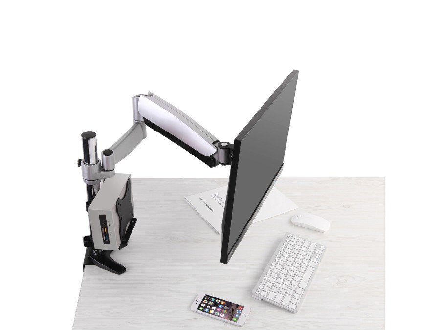 Držák na mini PC NUC Fiber Mounts M7C20 Univerzální držák na Intel NUC, Mini Mac CPU, mini PC a atp. Uchycení na držáky, za monitor, pod stolovou desku, zeď, tyč až 55mm. Nosnost 5kg. Univerzální držák pro uchycení malých PC na držák nebo na stůl. Ideální na Intel NUC, Mini Mac CPU a další podobné malé PC. Držák má nastavitelnou šířku dle potřeby od 17mm do 70mm - PC s větší šířkou jak 70mm není na držák možné uchytit. Držák Fiber Mounts M7C20 je možné uchytit na televizní držák přímo za monitor - podporuje VESA standardy, na nosnou tyč držáku pomocí objímky nebo kdekoliv na stůl. Držák je velmi bezpečný, zatížit ho můžete zařízením o hmotnosti až 5kg. Na držák na Intel NUC poskytujeme záruku 5 let. Univerzální držák na mini PC, NUC, MAC Mini CPU apod, uchycení na držák, za monitor, na stůl nebo na zeď - Fiber Mounts M7C20 Technické údaje: nosnost 5kg nastavitelná šířka držáku 17mm až 70mm ideální na Intel NUC a podobné uchycení na držák, tyč o průměru do 55mm nebo na stůl podporuje VESA standardy 50 / 75 / 100 bezpečná a pevná konstrukce materiál ocel zajišťovací páska pro zajištění CPU na držáku barevné provedení černé záruka 5 let Možnost uchycení na držáky nebo za monitory s VESA standardem: VESA 50x50 VESA 75x75 VESA 100x100 Držák na mini PC, Intel CPU, MAC Mini CPU apod. s uchycením na držák za monitor - Fiber Mounts M7C20 Možnost uchycení na tyč pomocí objímky. Vhodné na tyče o průměru do 55mm. Držák mini PC, Intel NUC, MAC Mini CPU apod, uchycení na tyč o průměru až 55mm - Fiber Mounts M7C20 Možnost uchycení pod stolovou desku nebo i na stěnu..