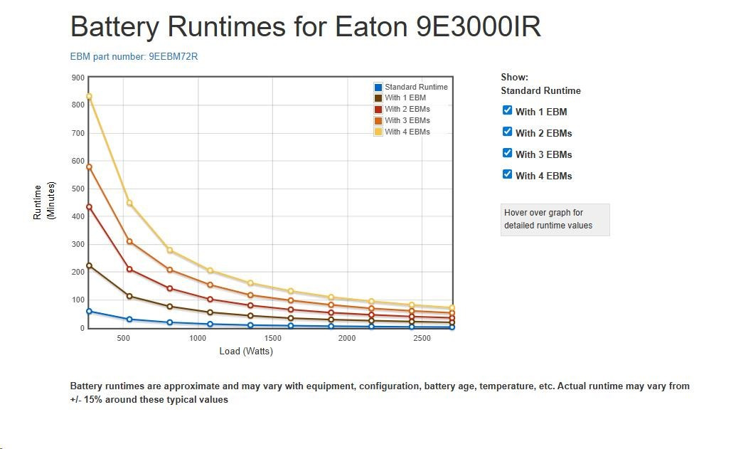 | TECHNICKÉ ÚDAJE PRODUKTU | SEKUNDÁRNÍ FREKVENCE - MAX. 60 Hz KŘIVKA VÝSTUPNÍHO NAPĚTÍ Sinusový výstup MAXIMÁLNÍ POČET BATERIOVÝCH MODULŮ 4 VÝKON 2700 W VÝSTUPNÍ ÚČINÍK 0,9 PROVEDENÍ Rack ZKRESLENÍ NAPĚTÍ VÝSTUPU (LINEÁRNÍ ZÁTĚŽ) – MAX. 3 ZAHRNUJE SÍŤOVOU KARTU Ne ZAPOJENÍ VSTUPU C14 VSTUPNÍ NAPĚTÍ – MIN. 140 V VÝSTUPNÍ NAPĚTÍ – MAX. 240 V SEKUNDÁRNÍ FREKVENCE - MIN. 50 Hz KOMPATIBILITA SOFTWARU Software Eaton Intelligent Power Manager, Eaton Intelligent Power Protector VÝMĚNA BATERIE Vyměnitelné baterie TYP BATERIE Bezúdržbový, olověný ÚČINNOST 91 ZVLÁŠTNÍ CHARAKTERISTIKY Topologie dvojité konverze Neustále monitoruje kvalitu vstupního napájení a reguluje napětí a frekvenci na výstupu Poskytuje větší činný výkon (ve wattech) pro lepší ochranu zařízení s účiníkem 0,9 Interní bypass zajišťuje kontinuitu provozu v případě poruchy UPS LCD displej Dlouhá doba zálohy s až 4 volitelnými EBM |
