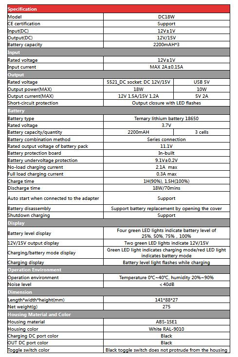 | Výstup | DC 12V/15V USB 5V |