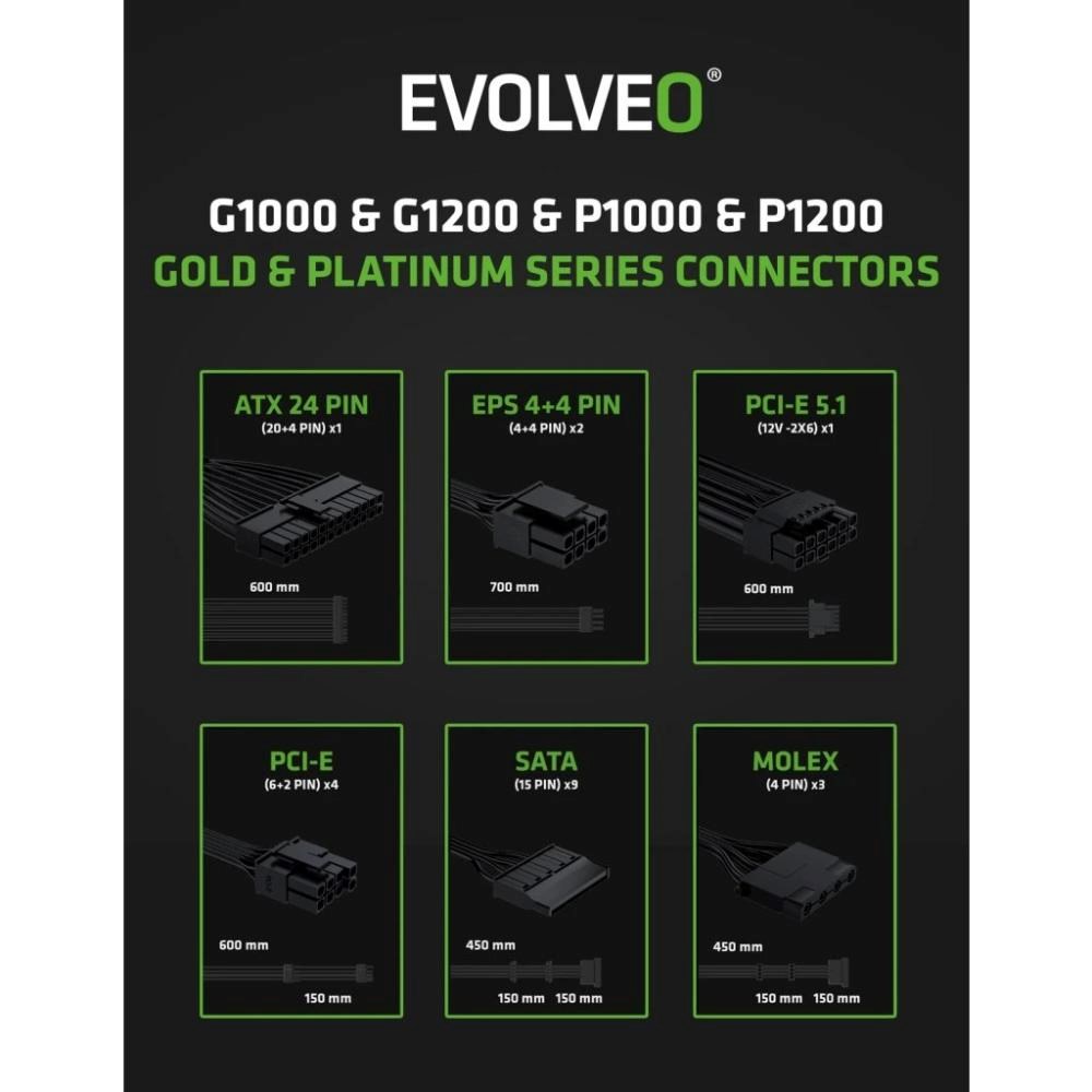 EVOLVEO G1000 zdroj 1000W, 80+ GOLD, ATX 3.1, aPFC, 140 mm ventilátor, záruka 3 roky, černý