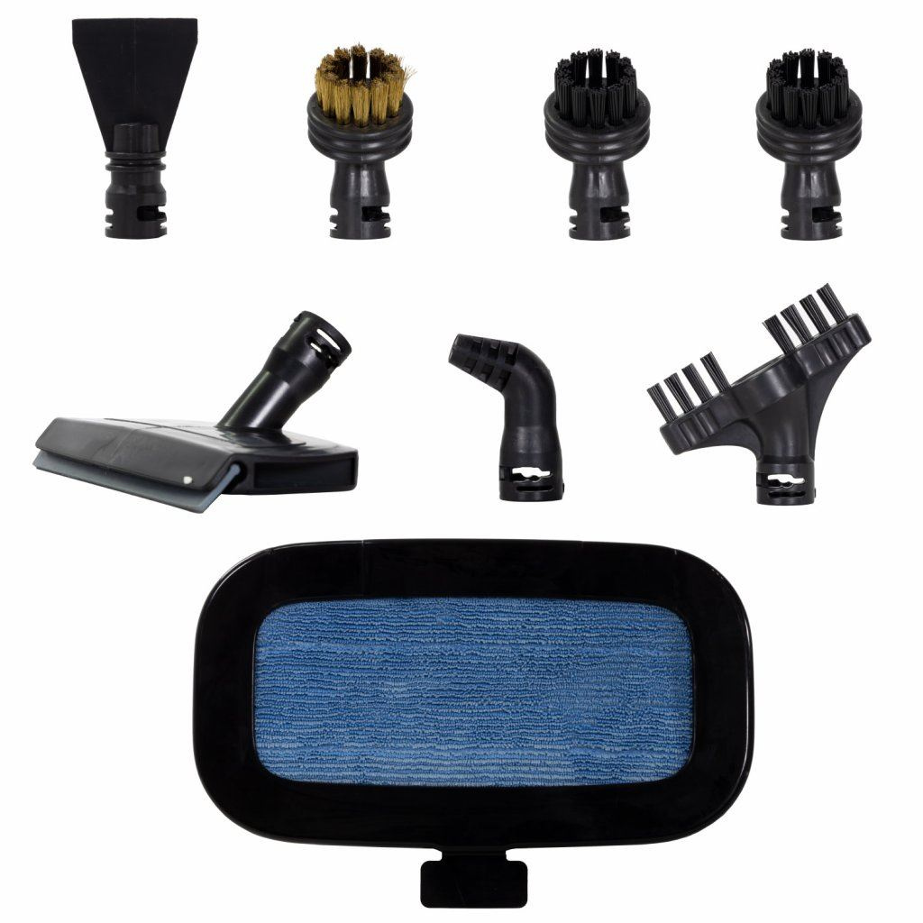 Součástí parního mopu je bohaté příslušenství na nejrůznější typy úklidu.