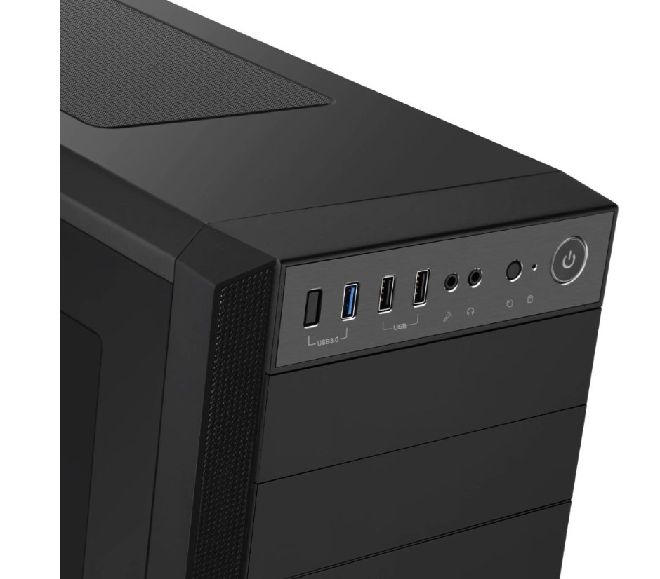Full ATX midi tower určený pro základní desky podporující platformu Intel i AMD. Mimo formátu ATX je kompatibilní i s formátem Micro ATX. Napájecí zdroj se umísťuje do dolní části skříně a mřížka je osazena prachovým filtrem. Skřín má průhlednou bočnici. Základní specifikace: 1x 5.25" externí 1x 5.25" interní 2x 3.5" interní 3x 2,5 " SSD (nebo 5x společně s 3.5") maximální délka VGA karty: 400 mm maximální výška CPU chladiče: 163 mm Rozšiřující sloty: • 7x PCI slot Přední I/O Porty: • 2x USB2.0 • 1x USB3.0 Ventilátory: • 2x 120 mm nebo 2x 140mm, přední • 2x 120 mm LED modrý, horní - instalovaný • 1x 120 mm LED modrý, zadní - instalovaný Rozměry: • 455 x 205 x 482 mm.