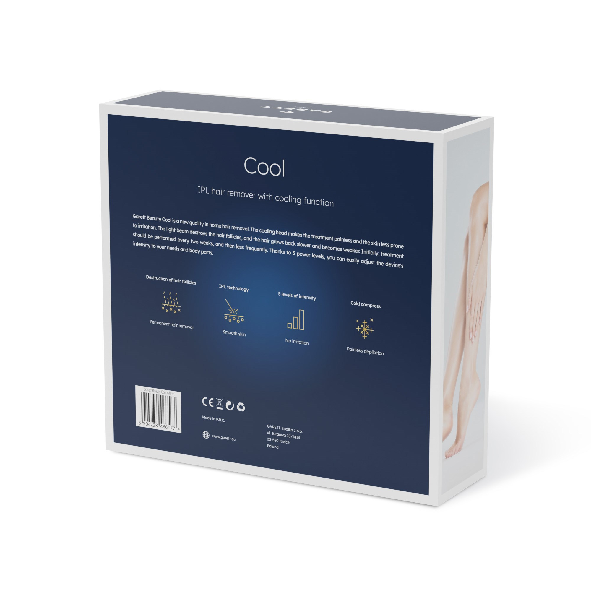 Světelné pulzy vysílané epilátorem Garett Beauty Cool přispívají k účinnému a dlouhotrvajícímu odstranění chloupků. Světlo z paprsku proniká pletí k vlasovému folikulu, je selektivně absorbováno melaninem v chloupku a přeměňuje se na teplo, což vede ke zničení vlasového folikulu. Postupem času se chloupky díky této formě epilace stávají slabšími a dorůstají pomaleji nebo dokonce zanikají. Použití technologie IPL v pohodlí domova je nyní možné a dostupné každému, kdo touží po dlouhodobém účinku.