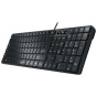 Elegantní drátová klávesnice v černém provedení disponuje tenkým profilem a komfortním jemným sklonem. Díky tomu poskytuje uživateli maximální pohodlí při každodenní práci. Předností jsou také multimediální klávesy pro ztlumení zvuku, otevření e-mailu apod. Klávesnice má speciální layout bez popisků na klávesách a je tak vhodná pro výuku desetiprstové hmatové metody psaní. Je vybavena samostatnou klávesou pro vyvolání AI asistenta Microsoft Copilot v systému Windows. Připojení k počítači je realizováno skrze USB port.