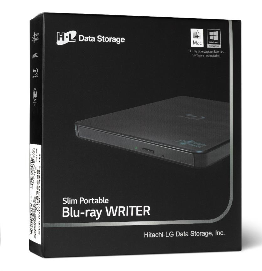 HITACHI LG - externí mechanika BD-W/CD-RW/DVD±R/±RW/RAM/M-DISC BP55EB40, Black, box+SW