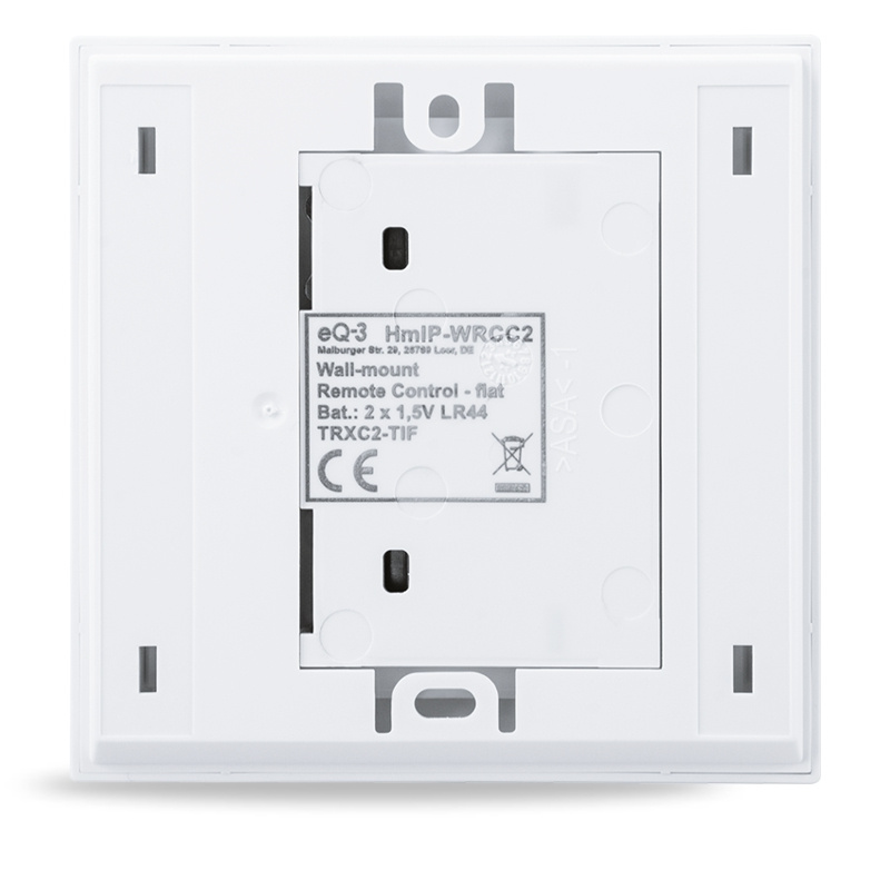 Programovatelný, bezdrátový Nástěnný dálkový ovladač (HmIP-WRCC2) je součástí systému chytré domácnosti Homematic IP. Dvě tlačítka pro manuální ovládání zařízení nebo vzdálené řízení systémových funkcí chytré domácnosti. Zařízení může ovládat osvětlení, rolety, žaluzie, garážová vrata atd.