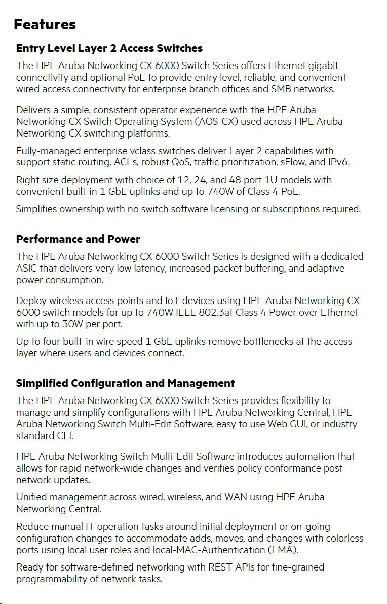 HPE Aruba Networking CX 6000 48G Class4 PoE