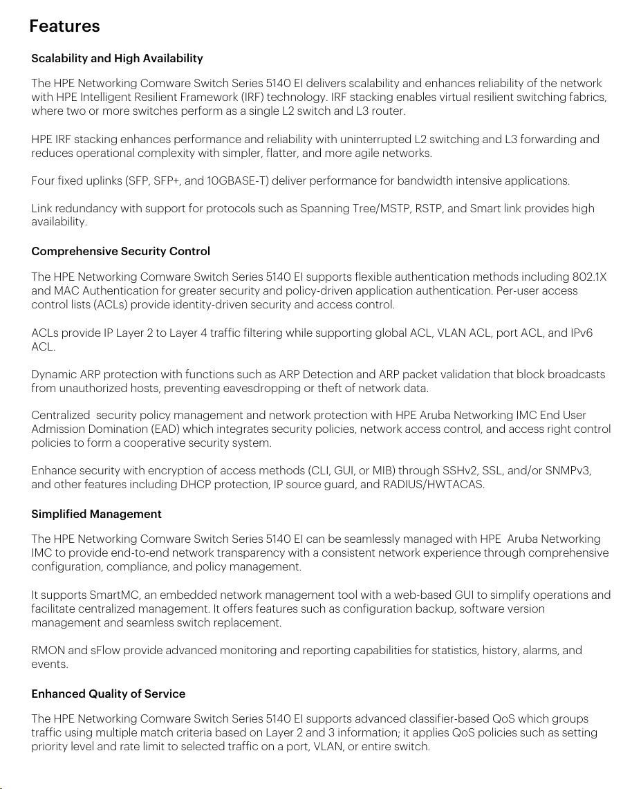 | HPE FlexNetwork 5140 24G SFP 4SFP+ EI Switch (JL826A) | ||