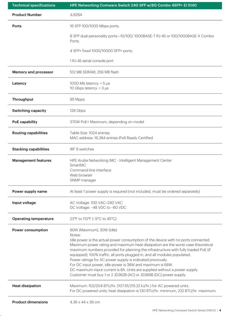 HPE Networking Comware Switch 24G SFP w/8G Combo 4SFP+ EI 5140 JL826AR RENEW