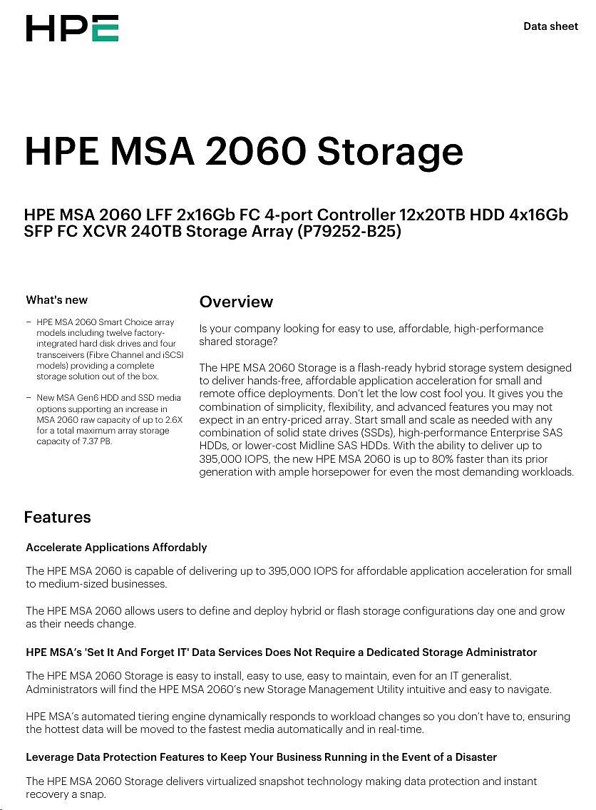 HPE MSA 2060 LFF 2x16Gb FC 4p Array.