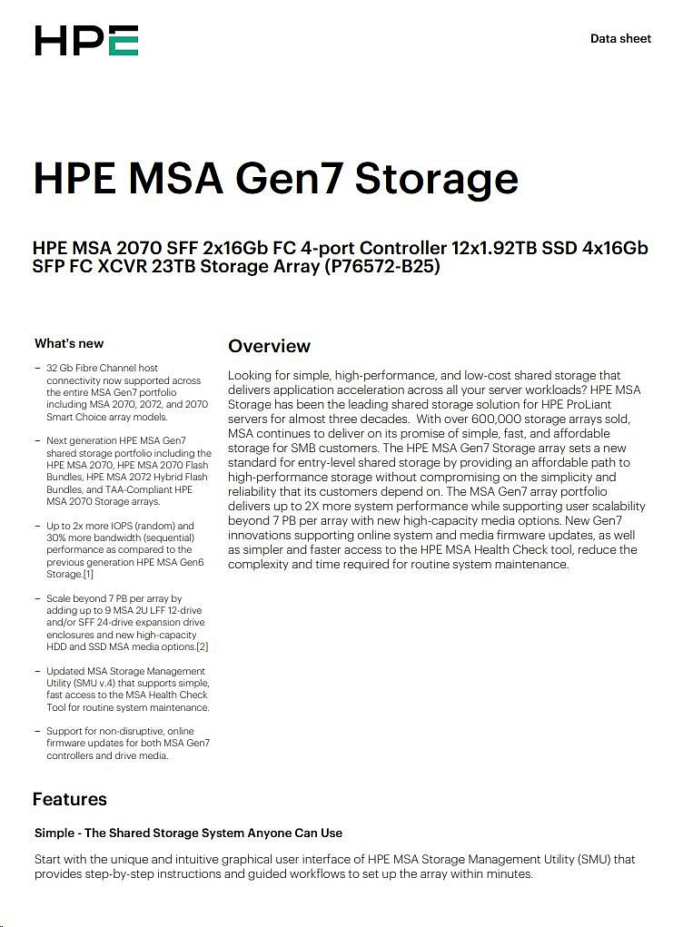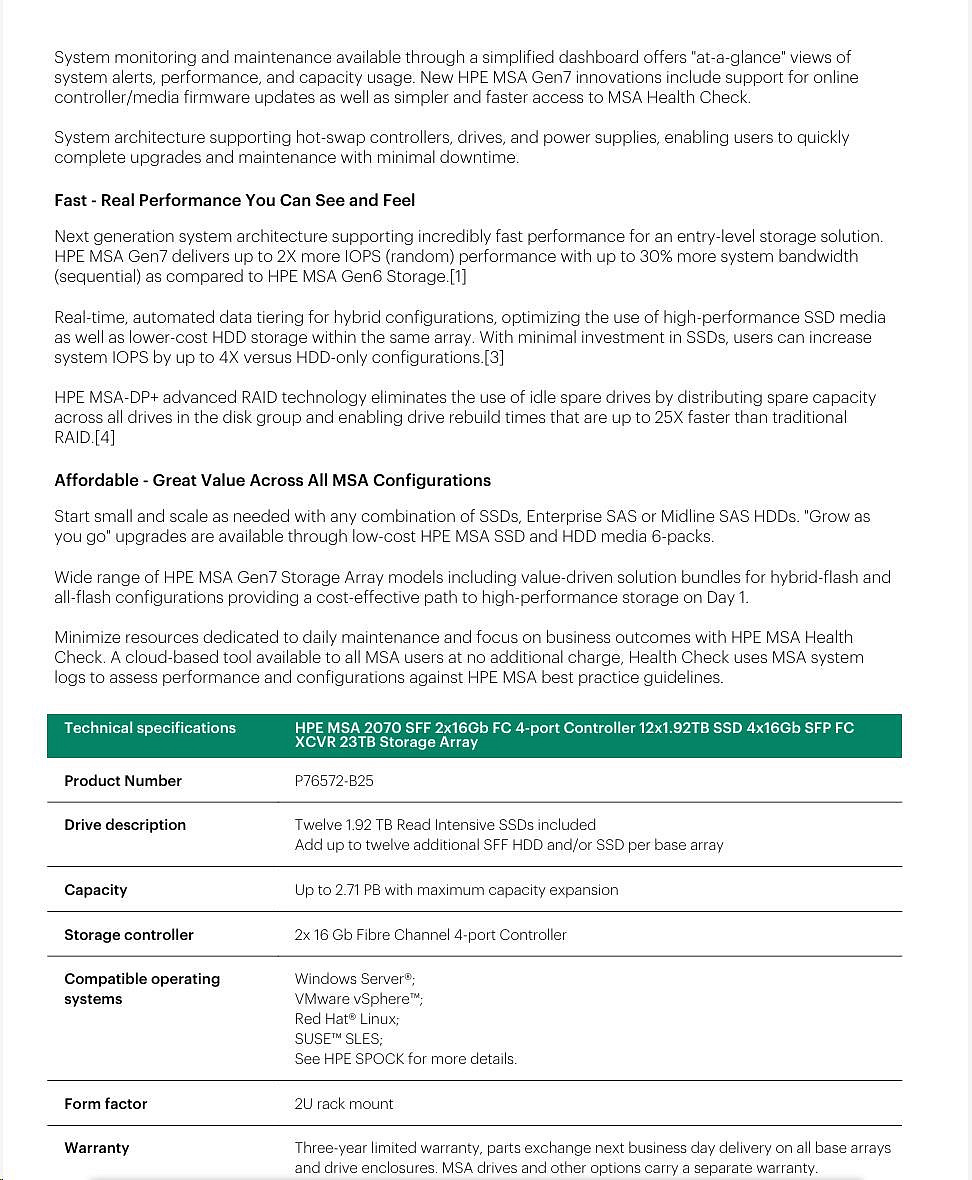 HPE MSA 2070 LFF 2x16Gb FC 4p Array.