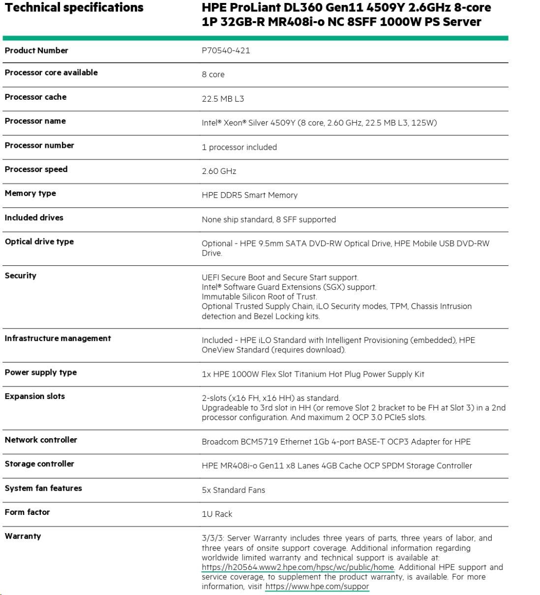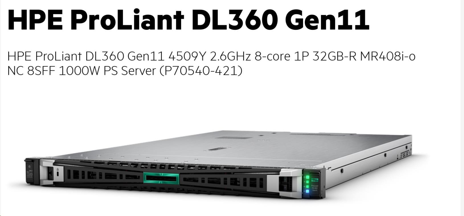 Model Name HPE PL DL360g11 4509Y (2.6G/8C) 1x32G MR408i-o/4G 8-10SFF 1x1000W 2x1G NBD333 1U