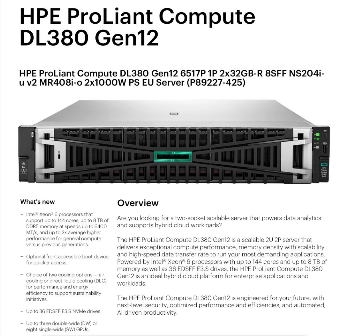 HPE PL DL380g12 6515P (2.4/16C) 2x32G (P69727) 2x480G MR408i-o 8SFF 2x1000W 2p10G-T NBD333 Smart Choice.
