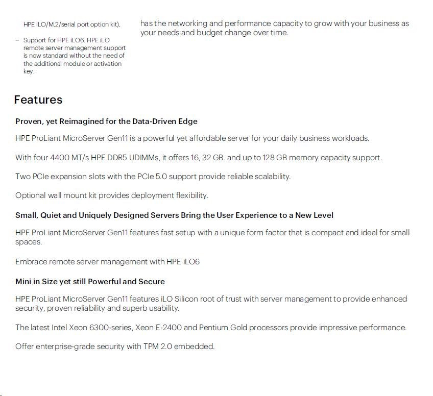 Přidat do oblíbenýchHPE PL MicroServer Gen11 G7400 (3.7/2C) 16G VROC 4LFF-NHP 1TB HDD 4p1G NBD111 iLo port (P65741-B21) Smart Choice