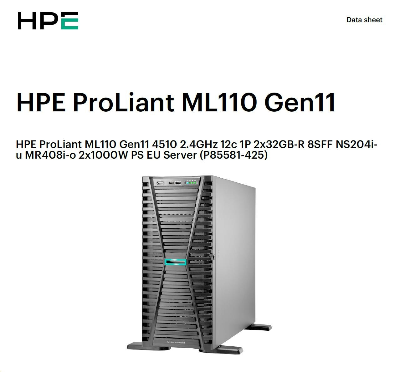 HPE PL ML110g11 4510 (2.4G/12C) NS204(2x480) 2x32G (P64706) MR408i-o 2x1000W 8SFF 2x1G NBD333 Smart Choice
