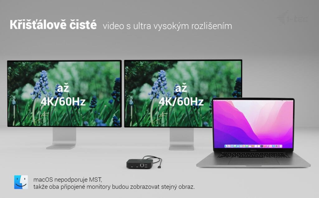 * macOS nepodporuje technologii Multi Stream Transport (MST), takže při použití tohoto systému bude na obou připojených monitorech zobrazen stejný obraz.